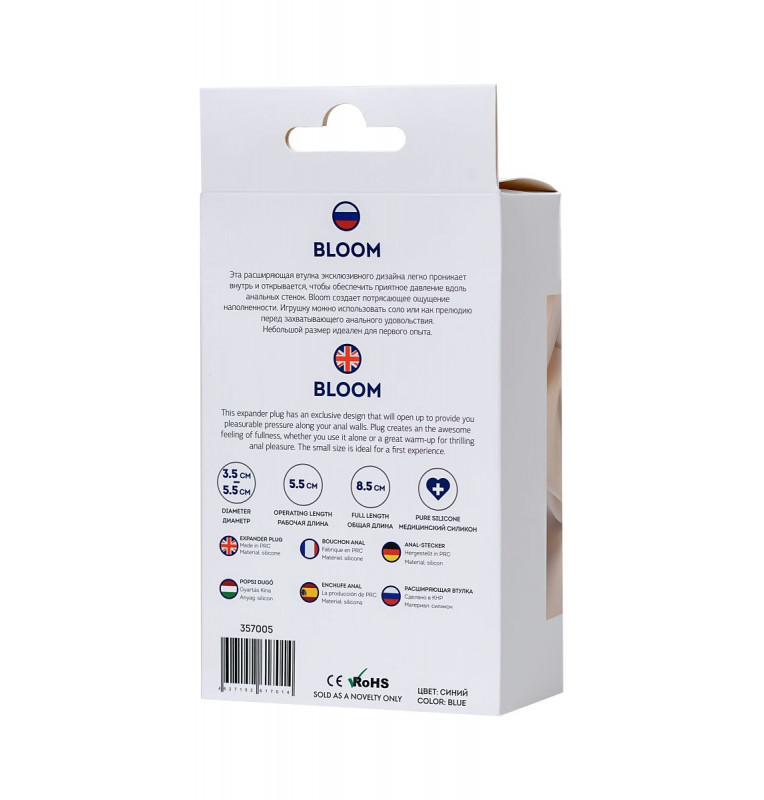 Эта расширяющая пробка эксклюзивного дизайна легко проникает внутрь и открывается, чтобы обеспечить приятное давление вдоль анальных стенок. Bloom создает потрясающее ощущение наполненности. Игрушку можно использовать соло или как прелюдию перед захватывающим анальным удовольствием. Небольшой размер идеален для первого опыта. Рабочая длина - 6,5 см. Минимальный диаметр - 0,7 см.