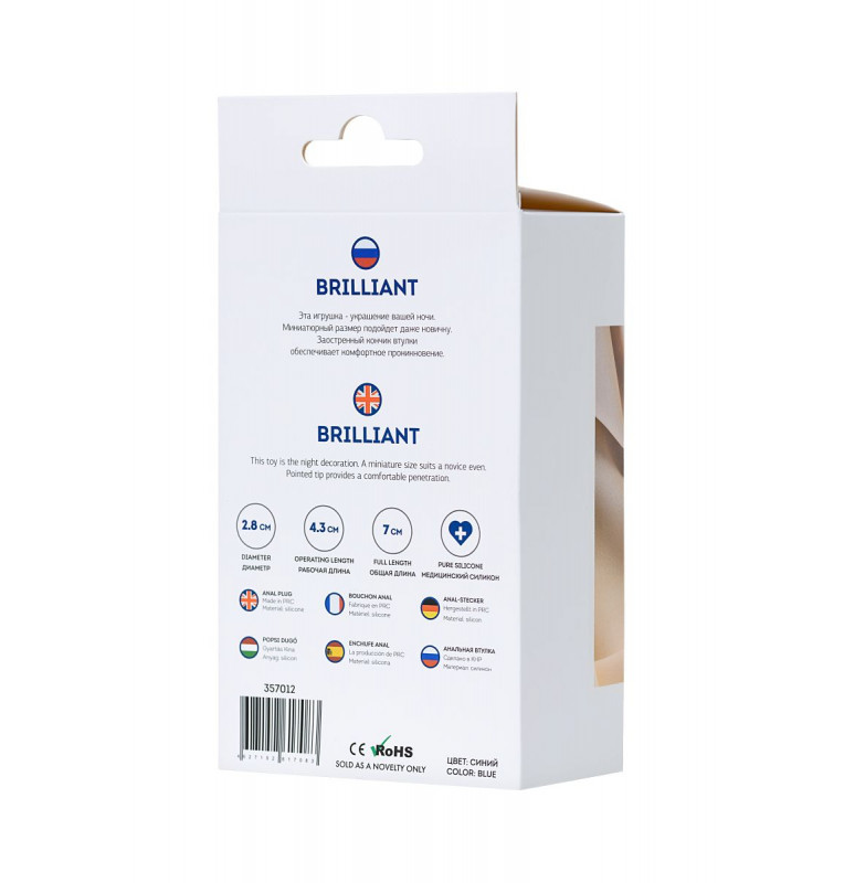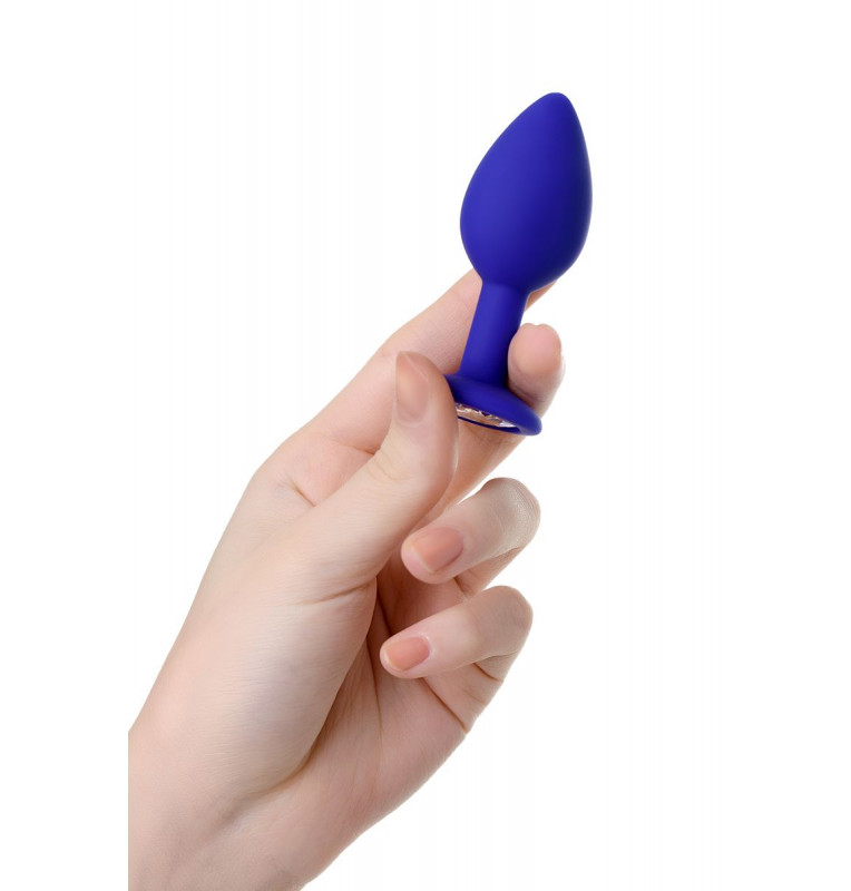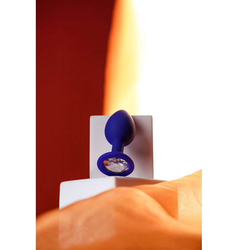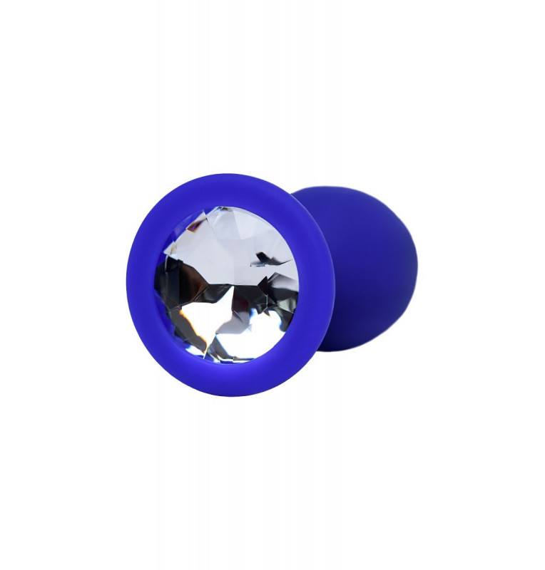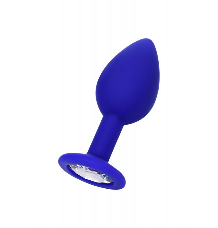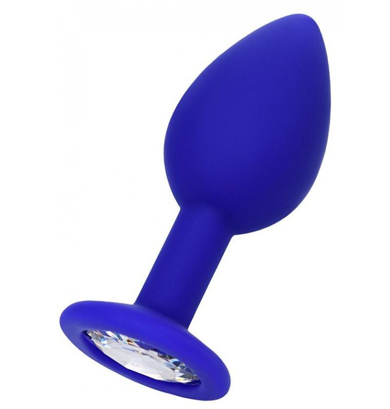 Синяя силиконовая анальная пробка Brilliant с прозрачным кристалллом - 7 см.