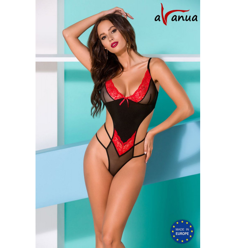 Эффектное боди Odina выполнено из эластичной ткани, полупрозрачного тюля и кружева с цветочным рисунком. Лиф мягкий без косточек, бретели регулируются по длине. Вырезы по бокам украшают мягкие стреп-ленты.