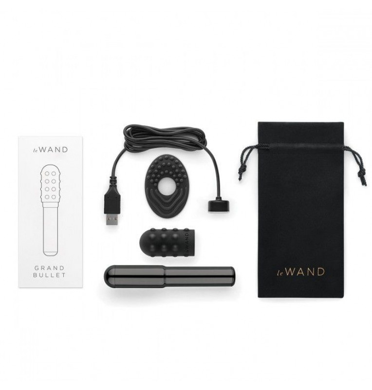 Чёрный жезловый вибратор Le Wand Grand Bullet с двумя нежными насадками
