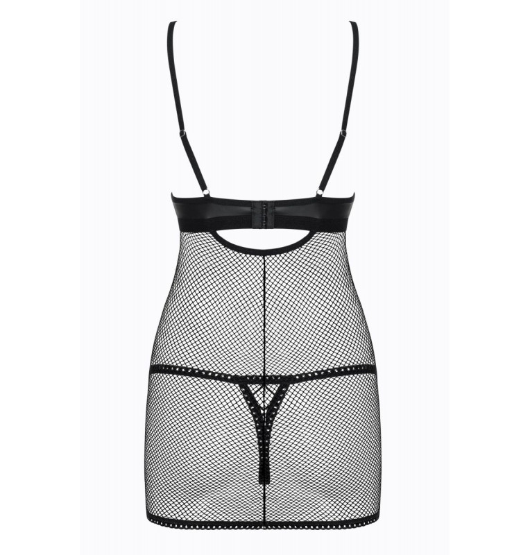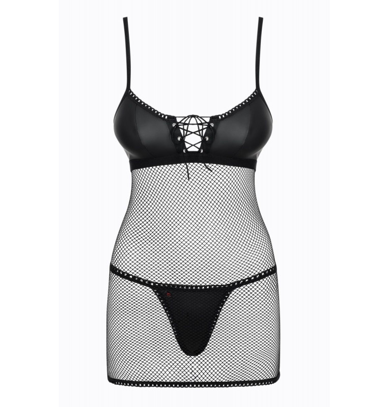 Соблазнительная сорочка Redella выполнена из мягкой сеточки и эластичной эко-кожи. Лиф сорочки мягкий без косточек, декорирован шнуровкой. Бретели и застежка на спинке регулируются. В комплекте: сорочка и трусики-стринги.