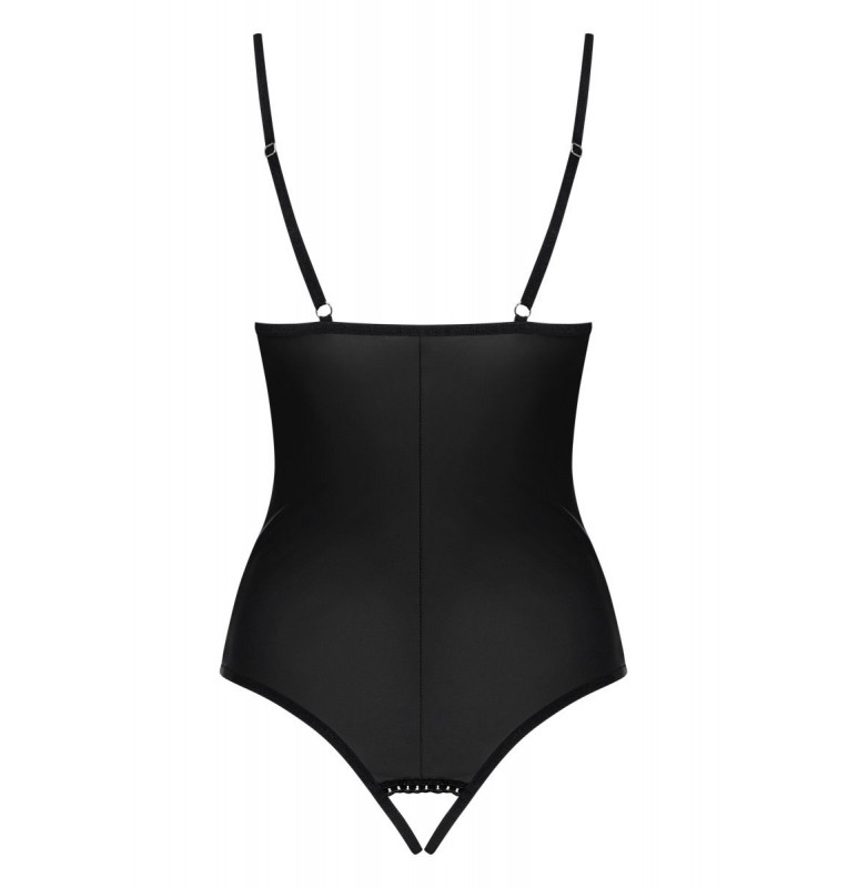 Соблазнительное контактное боди Redella выполнено из эластичной эко-кожи. Лиф мягкий без косточек, бретели регулируются по длине. Шнуровка проходит практически по всей передней части изделия.