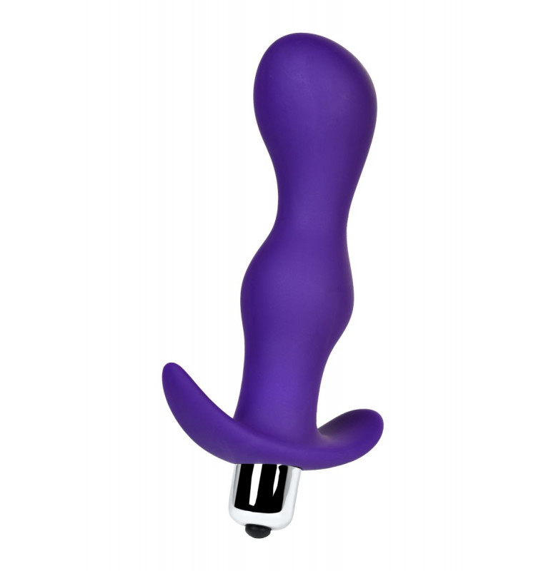 Фиолетовая изогнутая анальная вибропробка - 14 см.