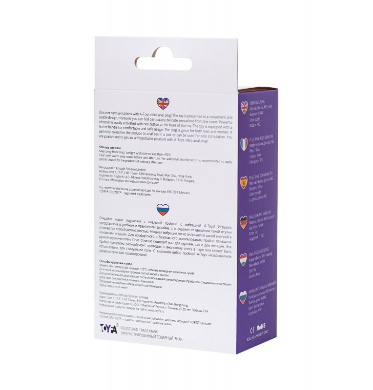 Откройте новые ощущения с анальной пробкой c вибрацией A-Toys! Игрушка представлена в удобном и практичном дизайне, а ощущения от введения такой втулки отличаются особой деликатностью. Мощная вибрация легко включается одной кнопкой в основании игрушки. Для комфортного и безопасного использования, пробка оснащена ручкой-ограничителем. Плаг отлично подходит как для мужчин, так и для женщин. Эта пробка прекрасно разнообразит прелюдию к анальному сексу в паре или может быть использована для стимуляции соло. С анальной вибро пробкой A-Toys незабываемое удовольствие вам гарантировано! Рабочая длина -11 см. Минимальный диаметр - 1,9 см.