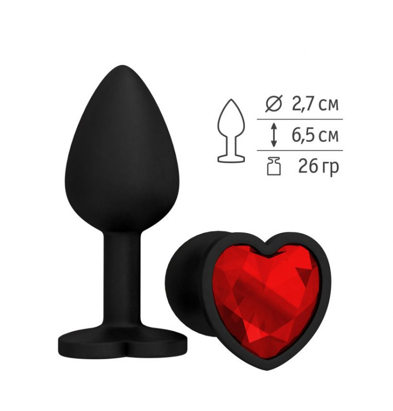 Черная силиконовая пробка с красным кристаллом - 7,3 см.