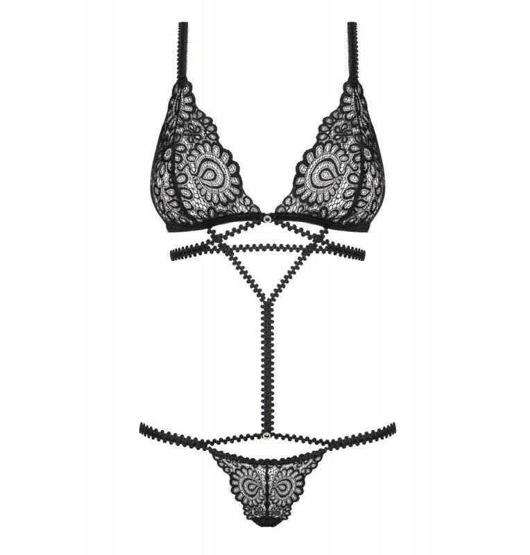 Эффектное боди Mixty выполнено из эластичного кружева и мягких лент. Лиф мягкий без косточек, низ боди выполнен в виде стрингов. Бретели регулируются.