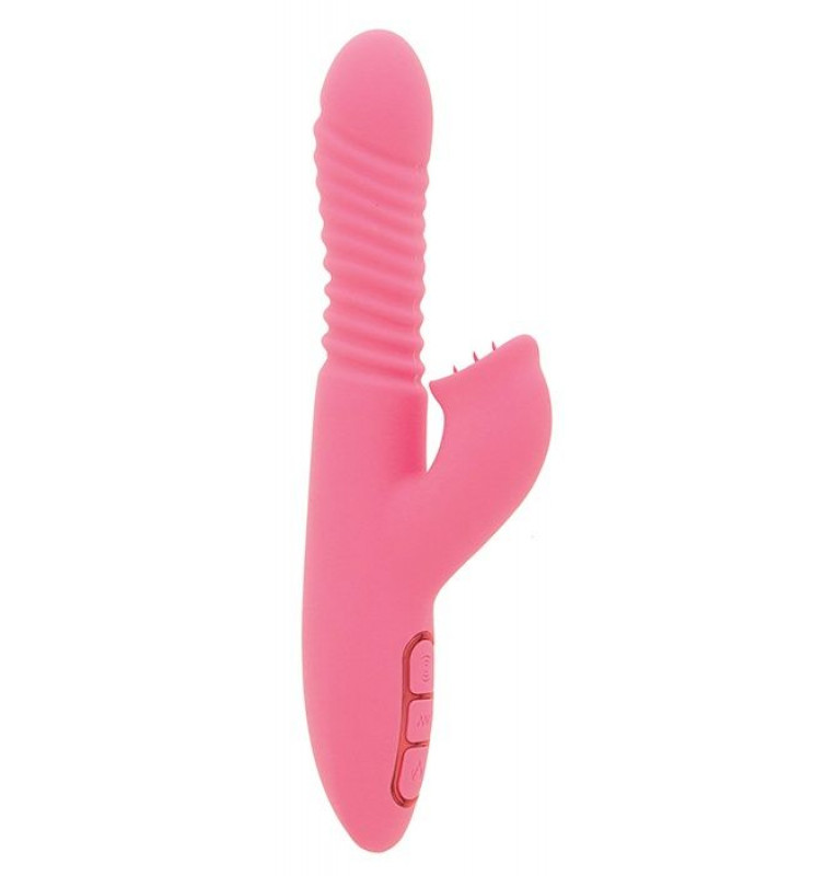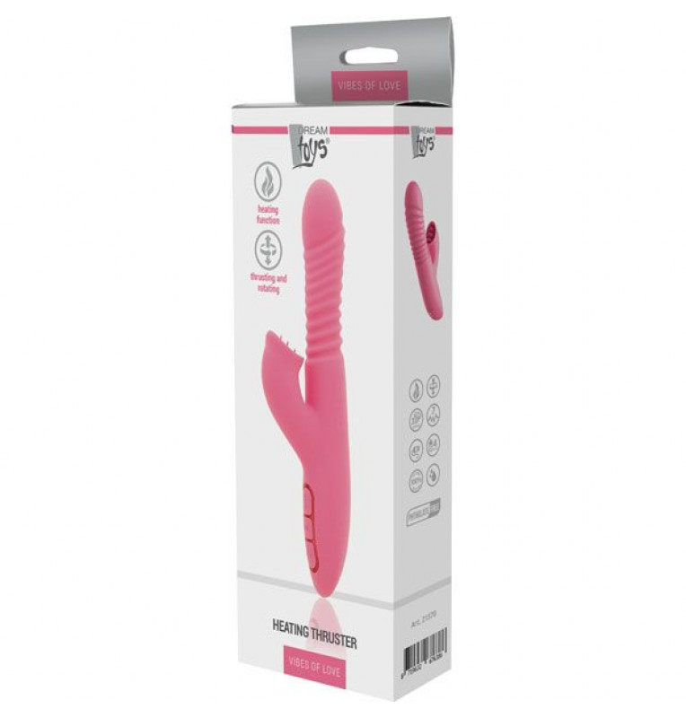 Розовый вибратор с нагревом HEATING THRUSTER - 24 см.