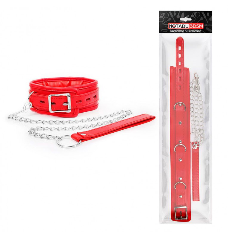 Великолепный БДСМ-аксессуар для любителей нестандартных эротических забав. В комплект входит ошейник с возможностью регулировки размера с помощью ремешков и металлическая цепочка-поводок с ручкой-петлёй, который при желании можно отстёгивать. Внутренняя поверхность ошейника имеет мягкую накладку, препятствующую натиранию кожи. БДСМ-аксессуар прост в применении, не требуют специального ухода.