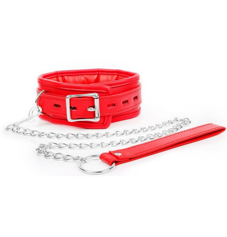 Красный ошейник на металлическом поводке с ручкой-петлей
