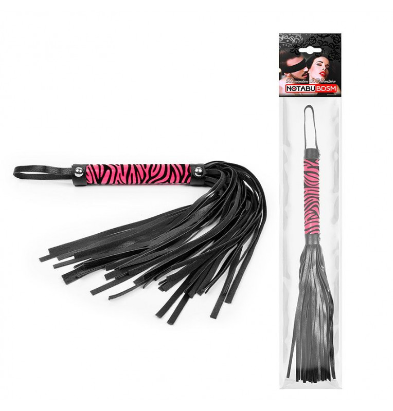 Черная многохвостовая плеть с круглой розовой ручкой-зеброй - 39 см.