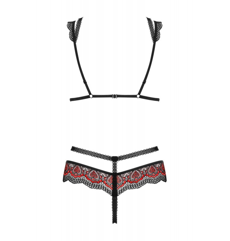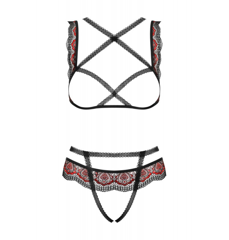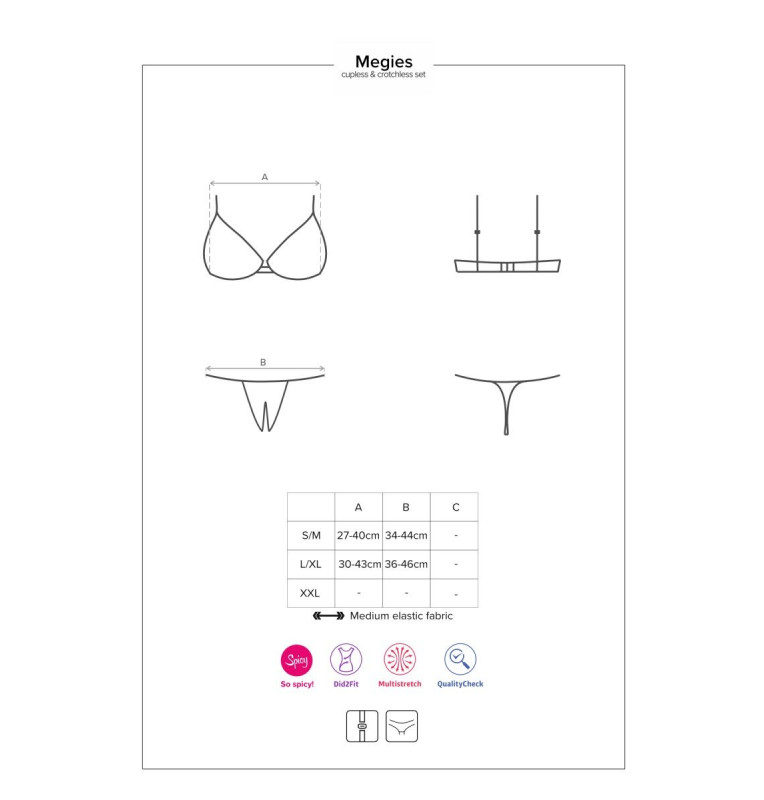 Откровенный комплект белья Megies выполнен из эластичного кружева в сочетании с мягкими стреп-лентами. В комплекте: бюстгальтер, трусики-стринги.