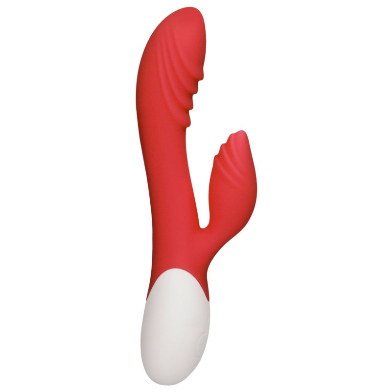 Красный вибратор-кролик Sunburst с функцией нагрева - 20 см.