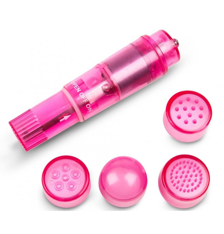 Он маленький, но мощный и с разными рельефными насадками. Выбирайте, какую поставить сегодня и наслаждайтесь. Вибратор сделан из пластика. Из-за компактности его удобно брать с собой в путешествия и даже спрятать в карман рабочего пиджака.