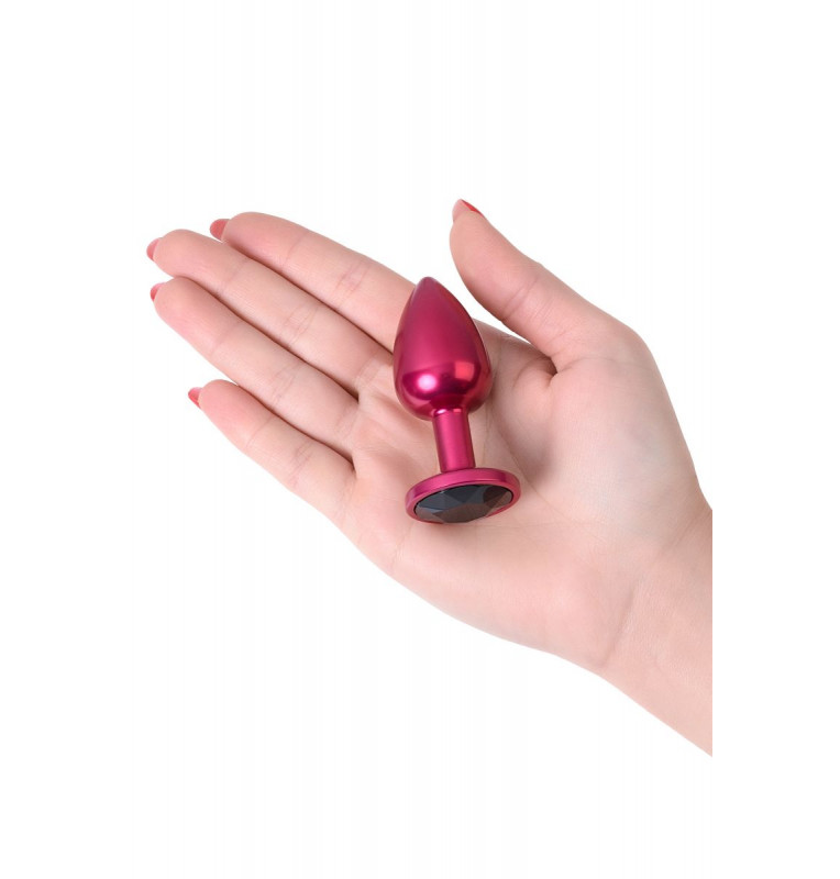Красная анальная пробка с кристаллом черного цвета - 7,2 см.