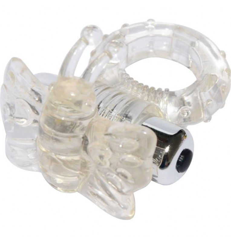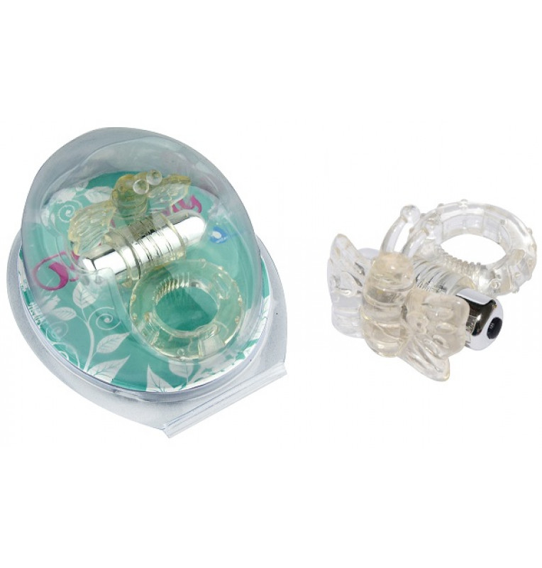 Прозрачное эрекционное кольцо с вибробабочкой