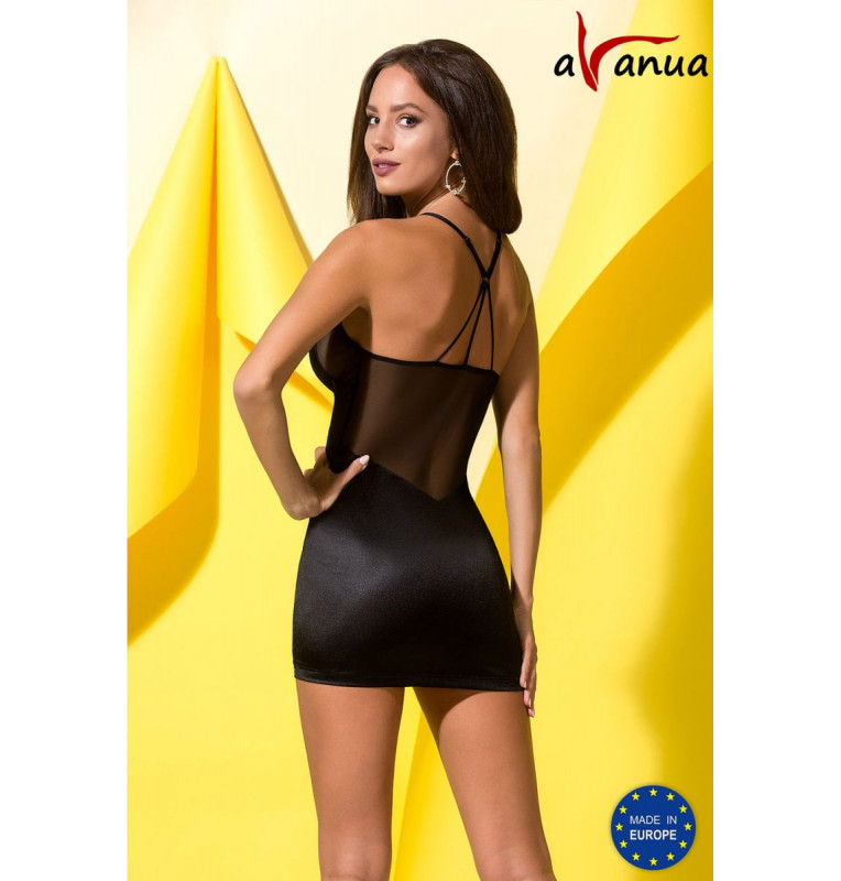 Короткая атласная сорочка со стрэп-лентами. В комплекте: сорочка и трусики-стринги.