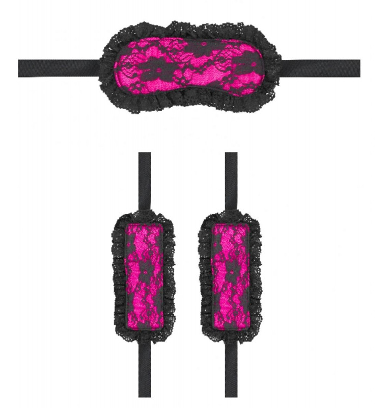 Introductory Bondage Kit №7 – набор, состоящий из 3 предметов для эротических ролевых игр и практик БДСМ. В комплект входят кружевная маска на глаза закрытого типа и два кружевных манжета, имитирующих наручники без сцепки.