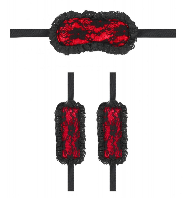 Introductory Bondage Kit №7 – набор, состоящий из 3 предметов для эротических ролевых игр и практик БДСМ. В комплект входят кружевная маска на глаза закрытого типа и два кружевных манжета, имитирующих наручники без сцепки.