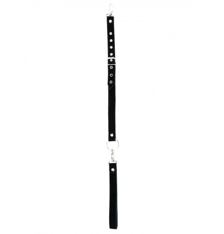 Поводок с одной стороны выполнен из натуральной кожи, а с другой стороны - из замши. Длина изделия регулируется металлической пряжкой, карабины и кольцо надежно фиксируют в подчинении, обеспечивая погружение в сладкий мир ограничений.