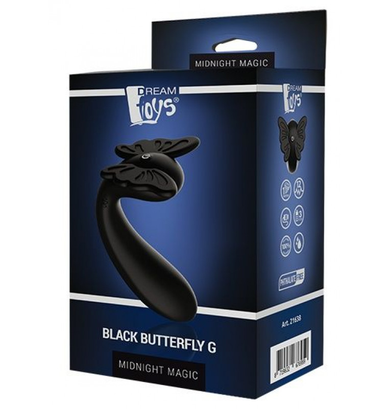 Black Butterfly G - это мощный вибратор изогнутой формы, гибкий и идеально подходящий для стимуляции точки G. Он изготовлен из силикона, перезаряжается от USB-провода и имеет простую в использовании кнопку управления между крыльями бабочки. Мотор имеет 3 уровня вибрации и 9 различных ритмов.