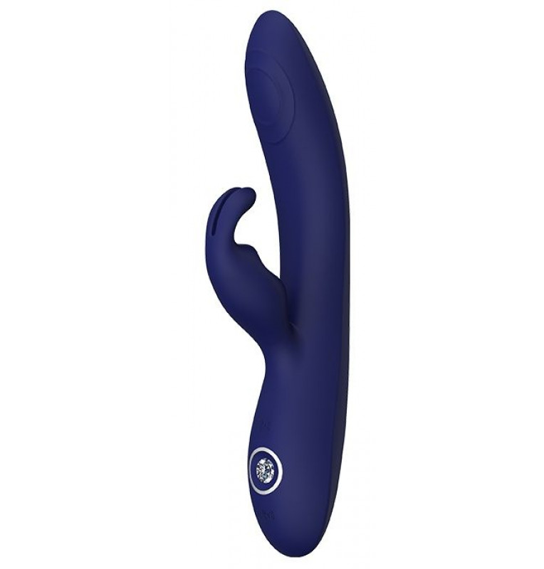 Синий вибромассажер-кролик THEMIS - 22 см.