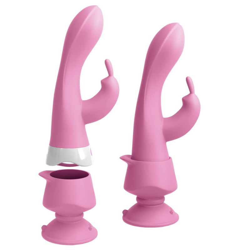 Розовый вибратор-кролик со съемной присоской Wall Banger Rabbit - 19,9 см.
