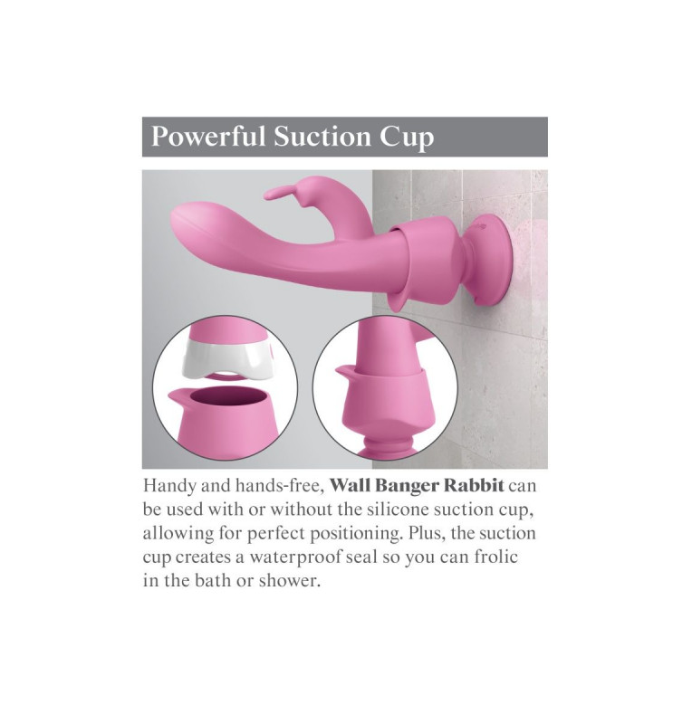 Говорят, что разнообразие - это пряность жизни, а 3Some Wall Banger Rabbit - одна из остреньких игрушек. Эта модернизированная двухмоторная адаптация классического вибратора-кролика поставляется со съемной присоской, идеальное позиционирование никогда не было проще! 3Some Wall Banger Rabbit - это более обновленная и функциональная версия классического вибратора-кролика.Достаточно мощный ствол доставляет невероятные ощущения в зону G, а милый клиторальный отросток в виде кролика интенсивно стимулирует клитор - мощное двойное удовольствие - это просто. 3Some Wall Banger Rabbit разработан так, чтобы им было легко пользоваться, позволяя вам сосредоточиться на ощущениях, а не возиться с элементами управления! Простая кнопка управляет 10 различными функциями этой игрушки, или для развлечения с партнером или без рук, вы можете использовать прилагаемый пульт дистанционного управления. После использования пульт можно закрепить на базе игрушки - его магнитные элементы прекрасно удерживают пульт на основании стимулятора. В комплекте с Wall Banger Rabbit представлена мощная силиконовая присоска, которую вы можете устанавливать для удобного использования без помощи рук! Он не только обеспечивает идеальное позиционирование, но и делает водонепроницаемым уплотнение, чтобы вы могли безопасно использовать его в душе. С присоской или без, Wall Banger Rabbit - это всегда удовольствие. Ремешок на основании игрушки позволит не волноваться,что вы можете выпустить Wall Banger Rabbit из рук. 3Some Wall Banger Rabbit перезаряжается от USB и имеет собственный зарядный кабель! За 1,5 часа зарядки вы получите до 1 часа времени работы.
