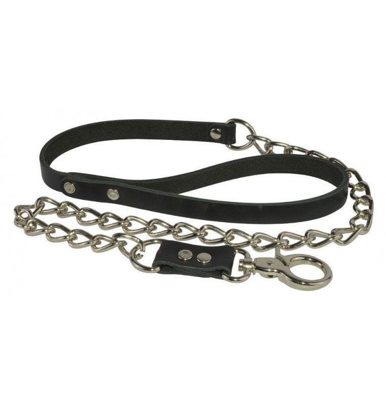 Массивный поводок-цепочка для ошейника. Ремешок изготовлен из натуральной кожи.