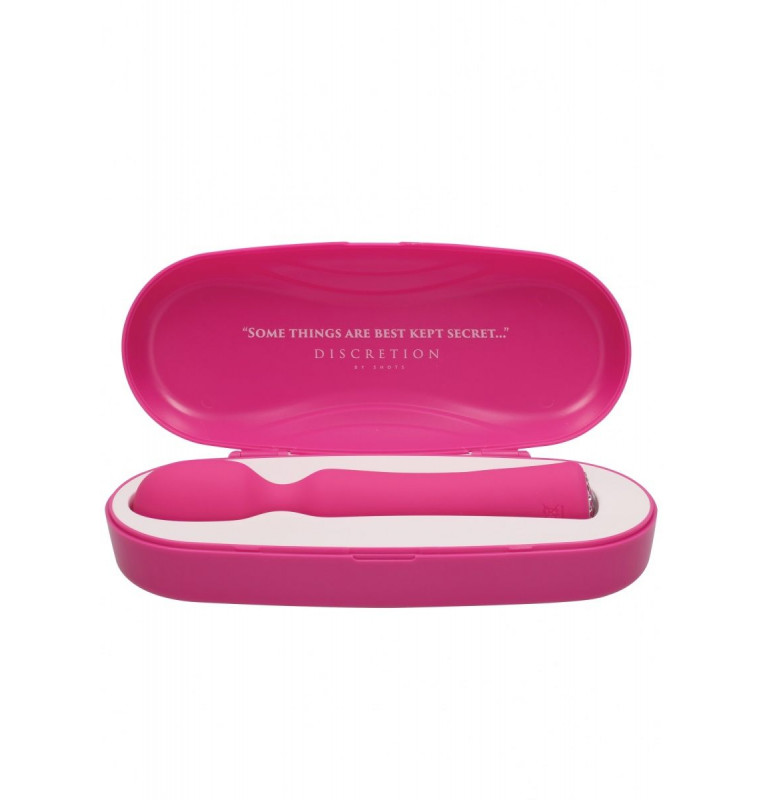 Wand Pearl - универсальный вибромассажер с инновационным электродвигателем нового поколения F1. Он делает интенсивную стимуляцию очень мягкой даже при мощном максимальном воздействии. Игрушка имеет 10 режимов вибрации, способной достигать 8500 оборотов в минуту. Вибромассажер имеет ярко выраженную головку. Очень гибкая и эластичная, она может гнуться на 36 градусов. Discretion представляет собой сочетание высоких технологий и роскоши ювелирных украшений. Эта изящная интимная игрушка оснащена на манер современных электронных устройств. Вместо обычной коробки изделие представлено в стильном компактном портативном кейсе в оттенках самого девайса. Абсолютно гладкая и обтекаемая поверхность имеет кнопки управления из сверкающих кристаллов, имитирующих бриллианты. Ещё одним преимуществом является полная водонепроницаемость. Вибромассажер заряжается футляра, который может быть подключен практически в любом месте, просто подсоедините идущий в комплекте шнур к совместимому порту компьютера или USB-адаптера (приобретается отдельно). Полная зарядка занимает 120 минут, ее достаточно для беспрерывной работы до 60 минут.