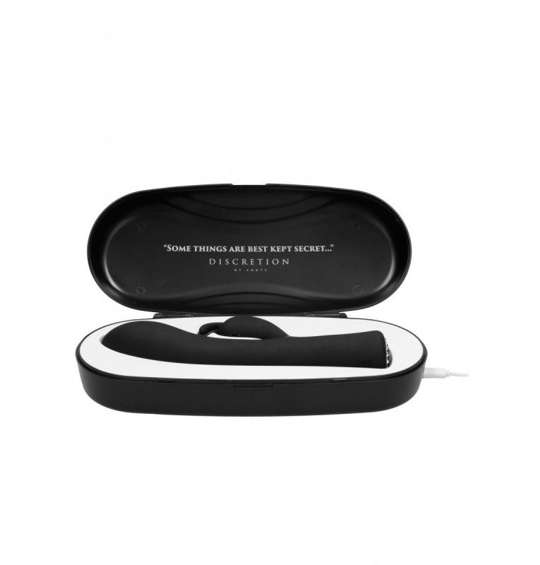 Lux - вибромассажер кролик с двумя инновационными электродвигателемями нового поколения F1. Они делают интенсивную стимуляцию очень мягкой даже при мощном максимальном воздействии. Располагаются электродвигатели по одному в каждом отростке. Игрушка имеет 10 режимов вибрации, способной достигать 8500 оборотов в минуту. Вибромассажер имеет очень гибкие и эластичные отростки с рельефной поверхностью для дополнительной стимуляции, идеально подстраивающиеся под анатомию тела. Discretion представляет собой сочетание высоких технологий и роскоши ювелирных украшений. Эта изящная интимная игрушка оснащена на манер современных электронных устройств. Вместо обычной коробки все изделие представлено в стильном компактном портативном кейсе в оттенке самого девайса. Абсолютно гладкая и обтекаемая поверхность имеет кнопки управления из сверкающих кристаллов, имитирующих бриллианты. Ещё одним преимуществом является полная водонепроницаемость. Вибромассажер заряжается от футляра, который может быть подключен практически в любом месте, просто подсоедините идущий в комплекте шнур к совместимому порту компьютера или USB-адаптера (приобретается отдельно). Полная зарядка занимает 120 минут, ее достаточно для беспрерывной работы до 60 минут. Рабочая длина - 11,5 см.