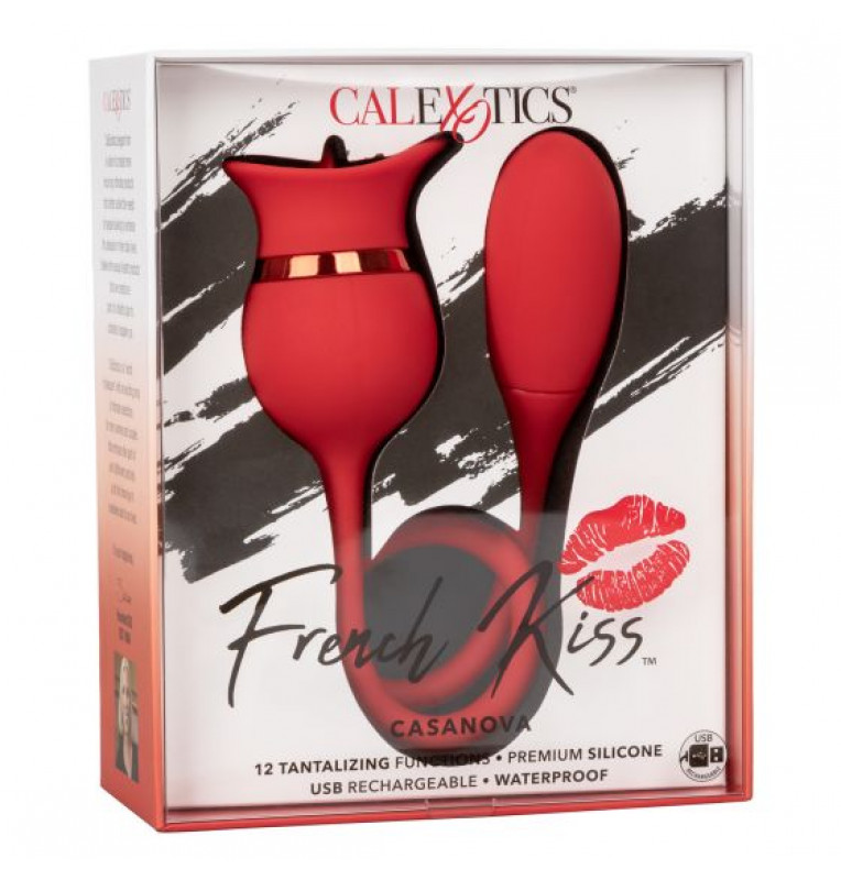 Красный клиторальный вибромассажер Casanova с виброяйцом на мягкой сцепке