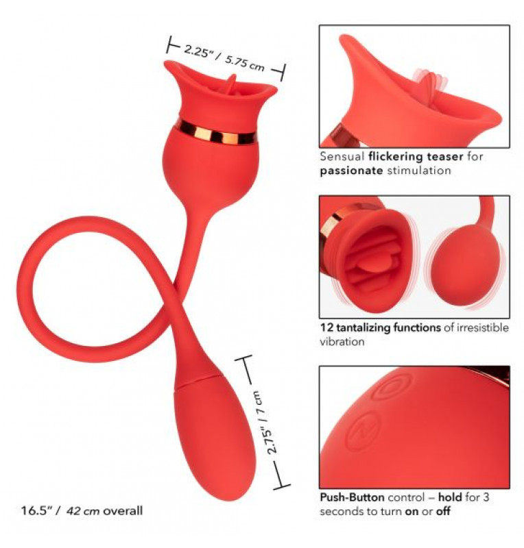 Вибромассажер Casanova – перезаряжаемый компактный мультискоростной вибратор из гипоаллергенного мягкого эластичного силикона. Эта модель имеет небольшой отросток в виде язычка и соединенное со стимулятором шнуром виброяйцо. Два отдельных мощных мотора обеспечивают 12 функций трепетной и интенсивной вибрации. Вибромассажер можно использовать для внешней, внутренней и одновременной стимуляции. Каждая часть может работать как самостоятельно, так и одновременно. Основной стимулятор имитирует интимные прикосновения языка. Для комфортности введения и получения максимально приятных ощущений рекомендуется использовать смазку на водной основе. Управление осуществляется с помощью двух кнопок в основании. Чтобы включить или выключить основной стимулятор, необходимо нажать и в течение трех секунд удерживать кнопку питания с кружком, находящуюся ближе к язычку. Чтобы включить или выключить яйцо, необходимо нажать и в течение трех секунд удерживать кнопку питания с волной, находящуюся дальше язычка. Для смены функции необходимо всего одно нажатие на ту или другую кнопку в зависимости от того, у какого из стимуляторов вы хотите сменить режим. Доступна возможность блокировки, которая позволит предотвратить самопроизвольное включение игрушки во время путешествий.Вибромассажер заряжается через USB и может быть подключен практически в любом месте, просто подсоедините идущий в комплекте шнур к совместимому порту компьютера или USB-адаптера (приобретается отдельно), а противоположный конец к разъему у основания. Длина виброяйца - 7 см., диаметр - 3,75 см. Длина клиторального стимулятора - 5,75 см. Время зарядки - 100 мин. Время работы - 70 мин.
