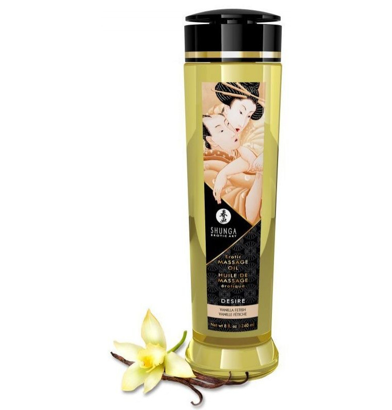 Массажное масло с ароматом ванили Desire. 100% натуральные масла холодного отжима, с витамином Е (антиоксидант), без жирных остатков, не забивает поры, нет минерального или животного масла. Мягкость и шелковистость этого масла с приятным скользящим эффектом на коже вызывает ощущение полного восторга. Сексуальное желание нарастает и вы готовы к любви. Получите взаимное удовольствие от чувственного эротического массажа с использованием нашей эксклюзивной смеси масел холодного отжима, тщательно отобранных за свои стимулирующие и придающие энергию свойства. Масло легко скользит по коже, не оставляя жирных ощущений, в то время как различные экзотические ароматы поднимут ваши чувства до вершин возбуждения. Идеально подходит для того, чтобы насладиться расслабляющим массажем или сделать его, совместив с обволакивающими обольстительными ласками. Это на 100 % натуральное масло с упоительным ароматом, легко скользит по коже, не оставляя жирной пленки. Запах массажному маслу придают эфирные масла и отдушки, что в отличие от большей части другой продукции SHUNGA, ароматизированной вкусовыми добавками, делает его несъедобным.