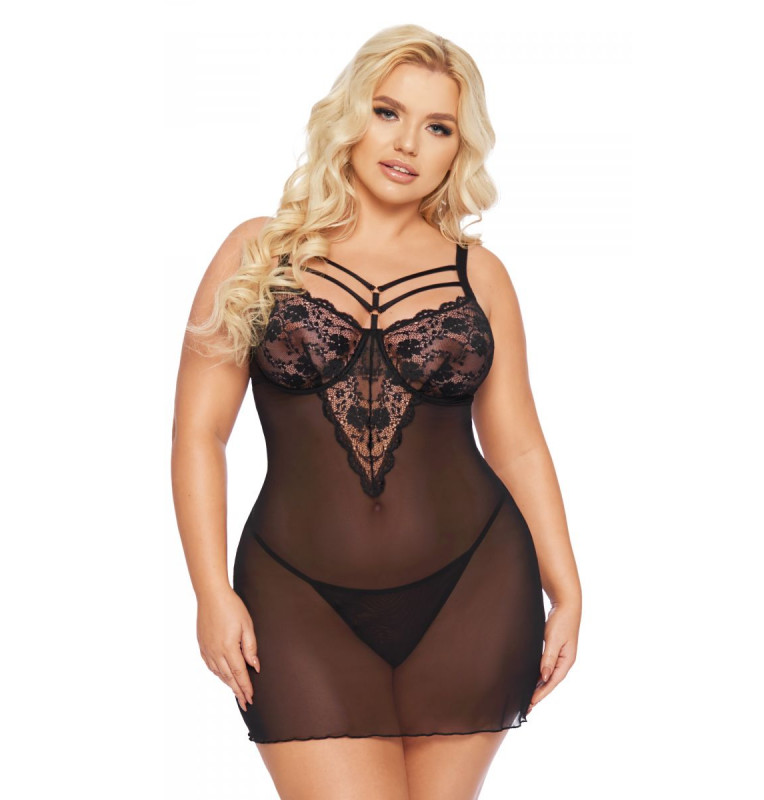 Сорочка женская из прозрачного мягкого материала с кружевным лифом на косточках. В комплект входят стринги. В комплекте: сорочка, трусики-стринги.