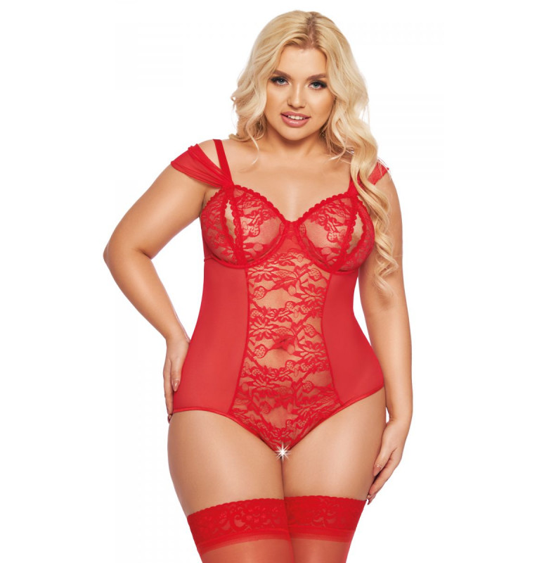 Боди из прозрачного мягкого материала с кружевным лифом на косточках и с вырезом в зоне груди.