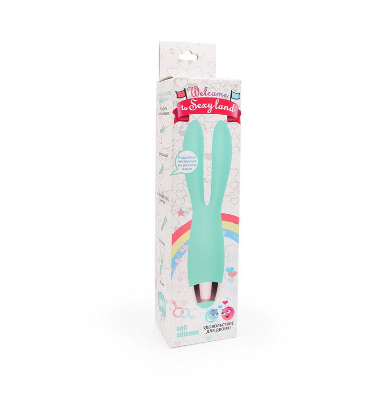 Мятный вибромассажёр с длинными ушками - 17 см.