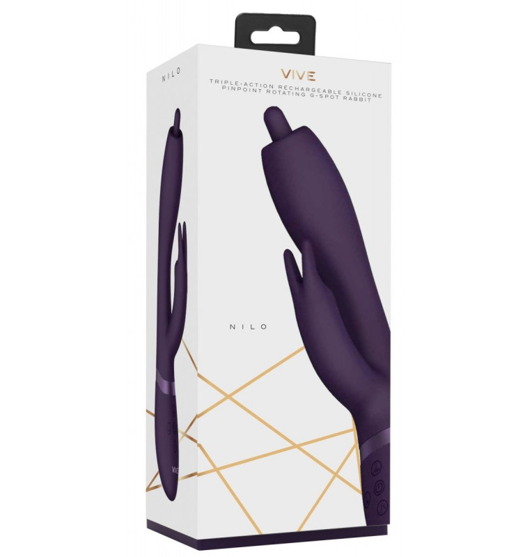 Nilo – необычный вибромассажер-кролик с вращающимися на 360 градусов небольшим кончиком на вагинальном отростке. Он изготовлен из высококачественного, мягкого, нежного на ощупь 100% медицинского силикона с пылеотталкивающими свойствами и прочного, элегантного АБС-пластика. Вибромассажер оснащен инновационными электродвигателями нового поколения F1. Преимущество такого типа двигателя в том, что он делает интенсивную стимуляцию очень мягкой даже при мощном максимальном воздействии. Игрушка имеет три мощных отдельных мотора, каждый из которых обеспечивает 10 функций вибрации, способной достигать 8500 и 9000 оборотов в минуту. Это дает возможность настраивать более чем 1000 уникальных комбинаций. Вибромассажер имеет необыкновенную функцию «мгновенный оргазм», при которой нажатие одной кнопки возводит интенсивность вибрации к максимальной точке. Вибромассажер подходит для вагинально-клиторальной стимуляции. Благодаря необычному кончику функцией «ротации 360 градусов» игрушка идеальна для более целенаправленной стимуляции точки G. Функция «мгновенный оргазм» дает возможность получения быстрого и/или очень сильного удовольствия. Вибромассажер полностью водонепроницаем, а это значит, что его можно смело использовать в ванной или душе. Вибромассажер заряжается через USB и может быть подключен практически в любом месте. Просто подсоедините идущий в комплекте шнур к совместимому порту компьютера или USB-адаптера (приобретается отдельно), а противоположный конец с магнитной зарядкой к игрушке. Полная зарядка занимает 180 минут, ее достаточно для беспрерывной работы до 60 минут. Рабочая длина - 12 см.