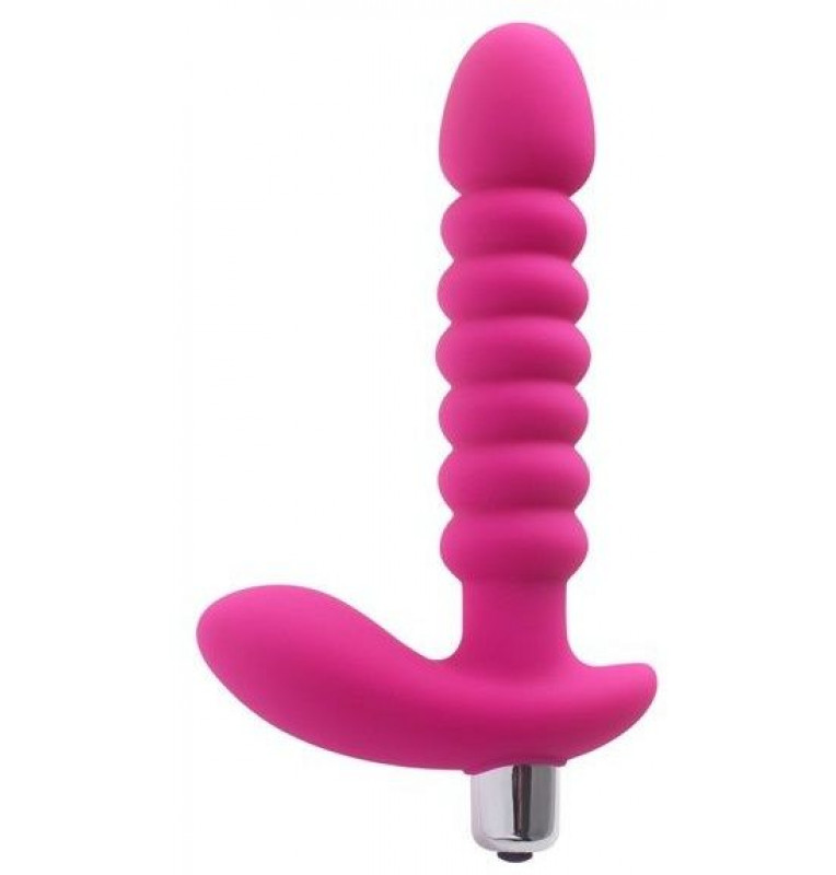 Розовый анальный рельефный вибростимулятор - 17 см.