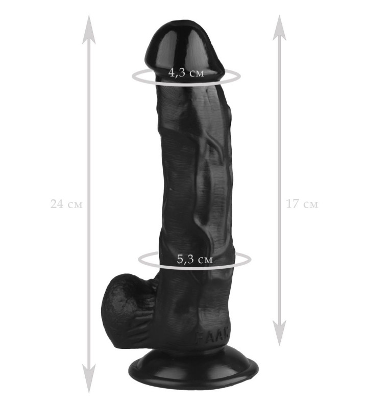 Черный реалистичный фаллоимитатор на присоске - 24 см.