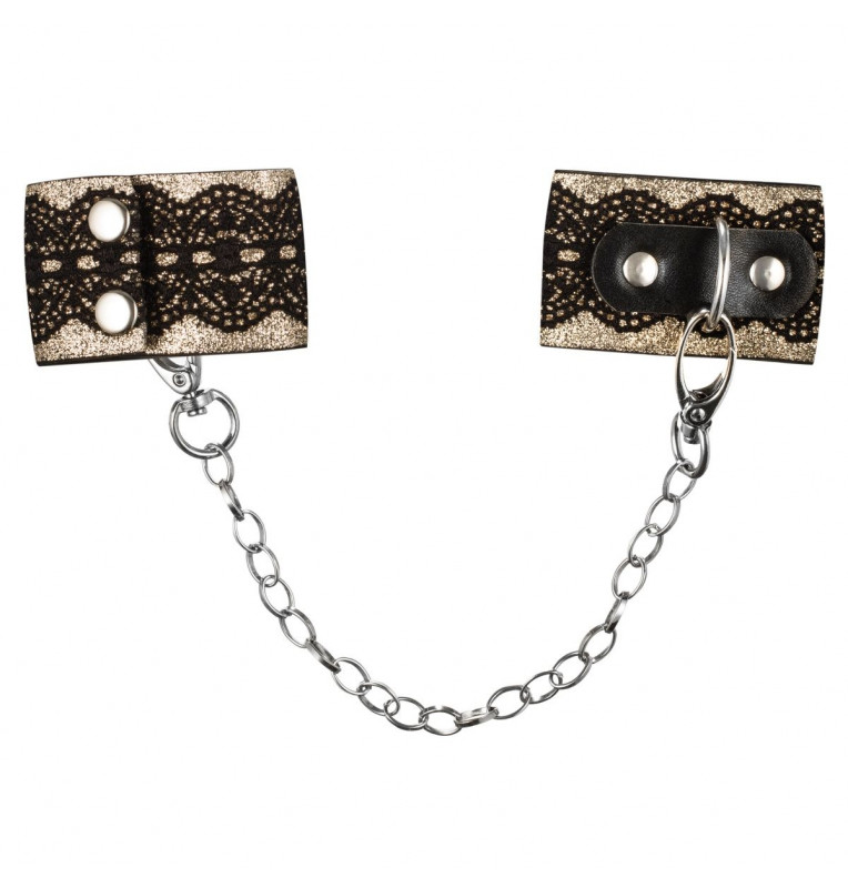 Стильные наручники переливающегося цвета с кружевом. Имеют съемную цепочку на карабинах. Застегиваются на две металлические кнопки.