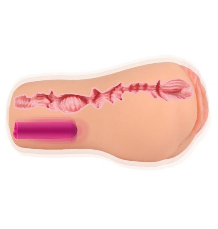 Телесный вибромастурбатор-вагина с рельефом EMILY AUTO