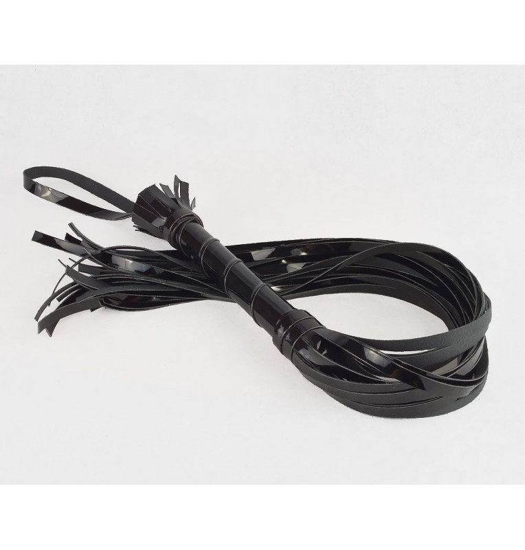 Гладкая лаковая плеть (флогер) изготовлена из искусственной кожи, цвет - черный. Состоит из жёсткой рукояти и ударной части из 24 хвостов. Используется в основном для разогрева (начало флогеляции), Идеально подходит для использования, как мужчиной, так и женщиной.