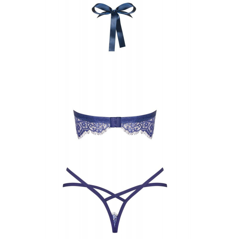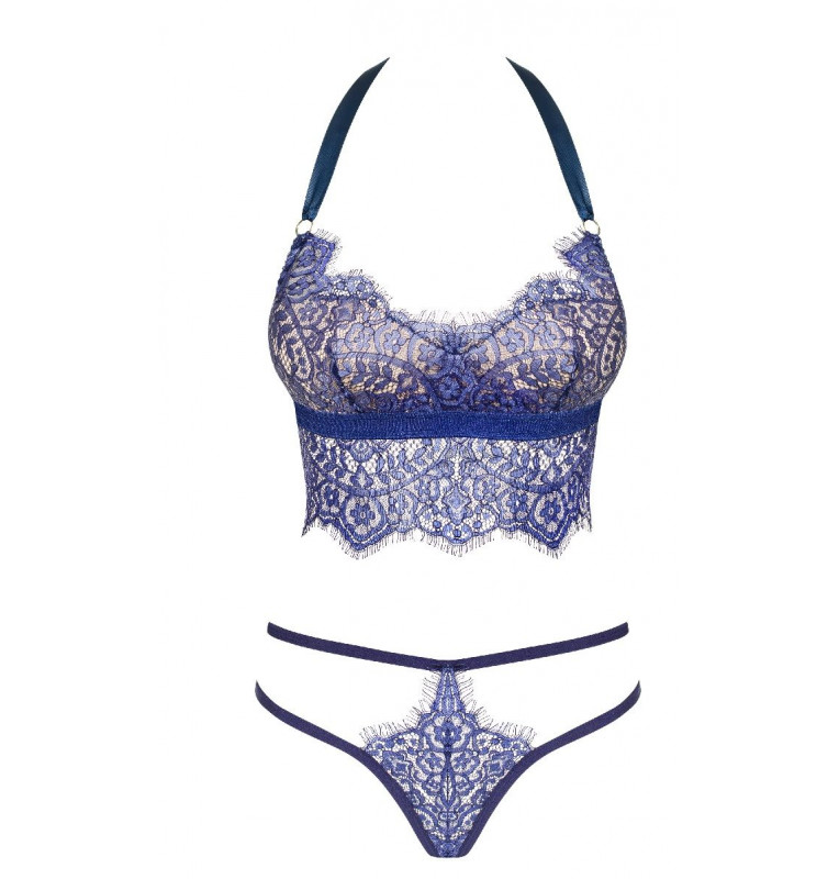 Эффектный комплект нижнего белья Flowlace состоит из бюстгальтера и стрингов. Комплект выполнен из эластичного кружева. Бюстгальтер мягкий с тонким поролоном, без косточек, бретель завязывается за шеей, на спинке застежка на крючки-петли. В комплекте: бюстгальтер, трусики-стринги.