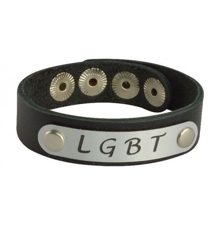 Браслет изготовлен из натуральной кожи и дополнен вставкой под металл с надписью LGBT. Регулируется при помощи кнопок.