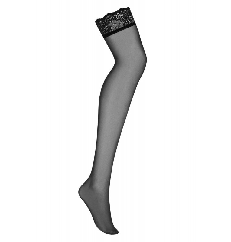 Элегантные чулки с очень широким кружевом с цветочным мотивом. Чулки предназначены для ношения с поясом.