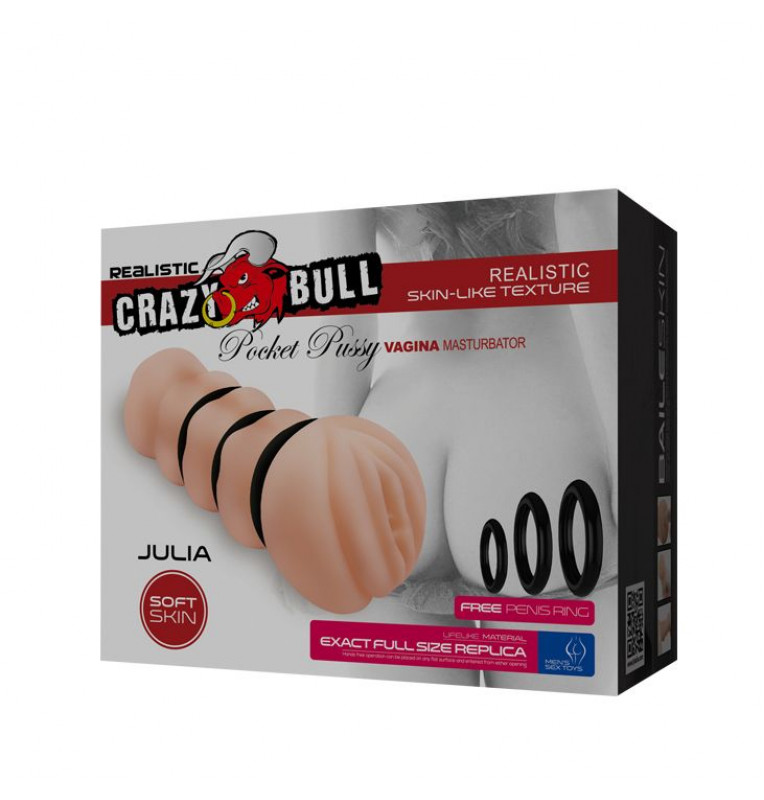 Тугой мастурбатор с кольцами Julia. Рельефный тоннель. Ультра реалистичный материал.