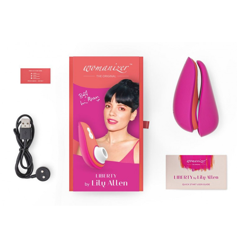 Стильное покрытие и 6 уровней стимуляции. Запатентованная технология Pleasure Air обеспечивает бесшумную работу: приятное всасывание и нежные массирующие воздушные волны приводят к совершенно новому типу оргазма. Оно также гарантирует гигиеническое хранение. 6 различных уровней интенсивности гарантируют идеальные ощущения с каждым использованием. 100% водонепроницаем. Один заряд обеспечивает 120 минут удовольствия. Есть магнитный контактный USB-порт для зарядки. Liberty изготовлен из материалов, безопасных для тела. Очень тихий. Комплект включает дополнительную головку для стимуляции большего размера, чтобы каждая женщина могла использовать Womanizer. Ширина - 5,5 см.