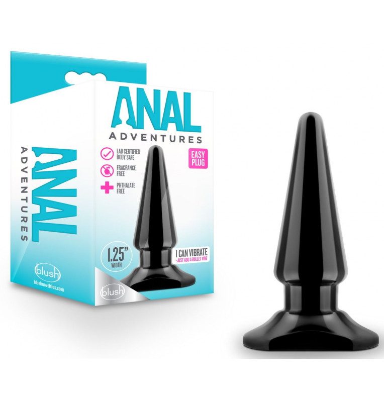Чёрная анальная пробка Easy Plug. Широкое ограничительное основание. Рабочая длина - 7,62 см.