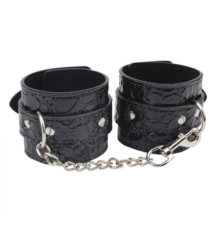 Наручники на цепочке. Широкие манжеты на пряжках для рук. Материал - искусственная кожа, металл.