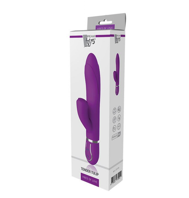 Фиолетовый вибратор-кролик TENDER TULIP с пупырышками - 22 см.